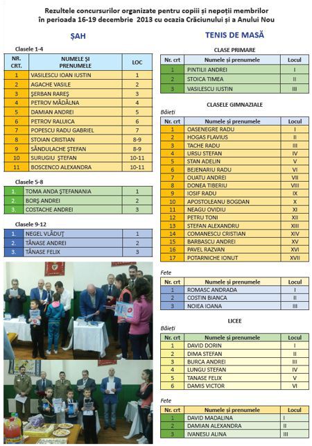 Rezultatele competiției "Tinere vlăstare" la șah, cros și tenis de masă