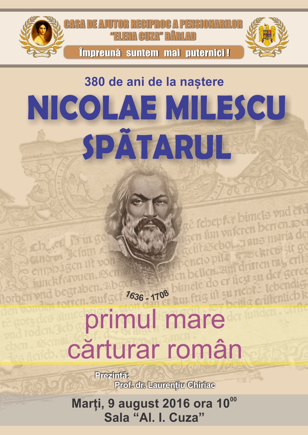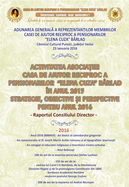 Magistr. (pens.) Nicolaie MIHAI Președintele C.A.R.P. „Elena Cuza” Bârlad