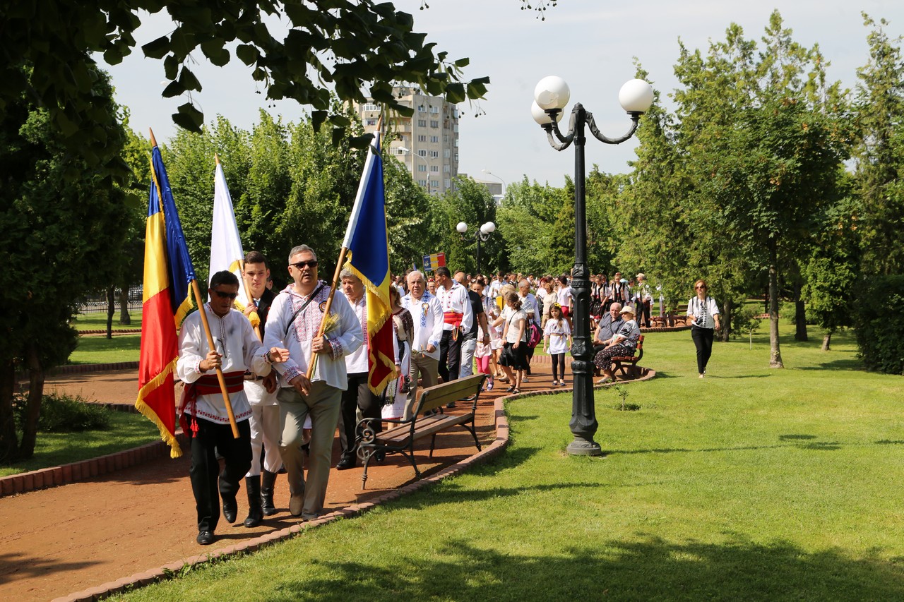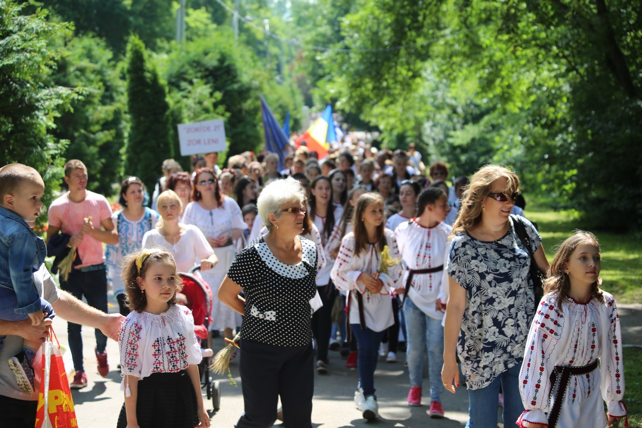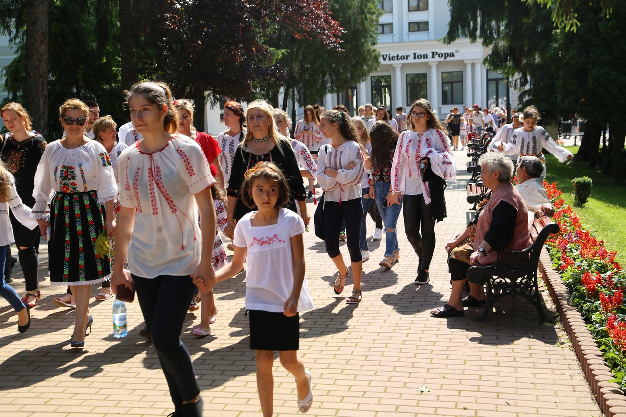 ÃŽmbrăcăți cu ii, locuitorii municipiului Bârlad adunați în fața clădirii Palatului Comunal au străbătut pe jos distanța până la Grădina Publică, unde Ilene Cosânzene și Feți-Frumoși i-au întâmpinat cu un program artistic în incinta Teatrului de Vară, reamintindu-le, în acest fel, de frumusețea portului tradițional și de farmecul cântecului popular românesc.