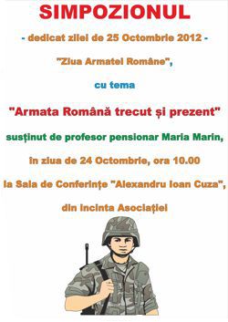 Miercuri 24 Octombrie 2012, ora 10.00 în Sala de Conferințe "Al. I. Cuza" din incinta CARP Bârlad a avut loc Simpozionul dedicat zilei de 25 Octombrie 2012, Ziua Armatei Române, cu tema "Armata Română trecut și prezent"