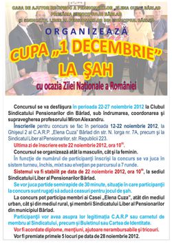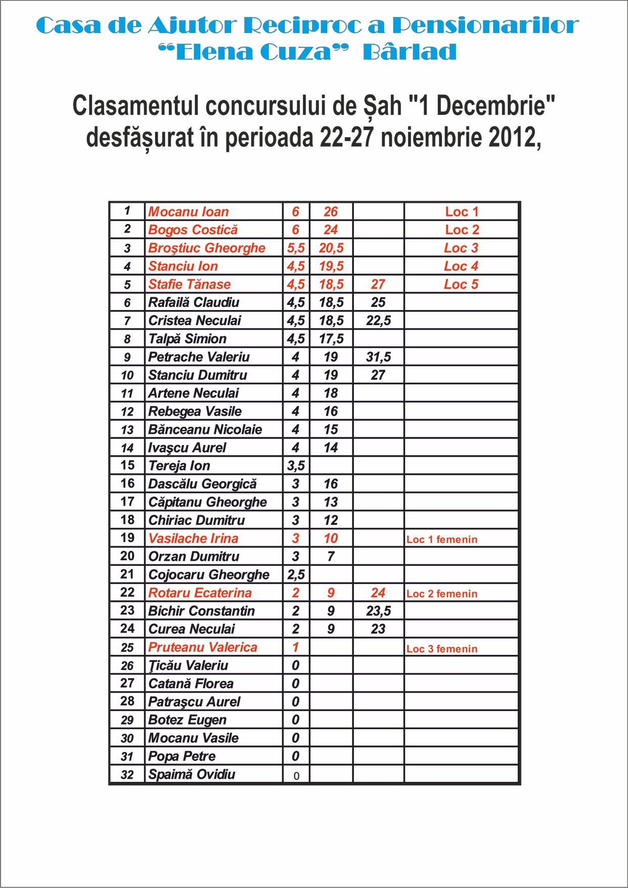 Castigatorii Concursului de Sah organizat cu ocazia Zilei Internationale a Persoanelor Varstnice, 1 Octombrie 2012 ...detalii
