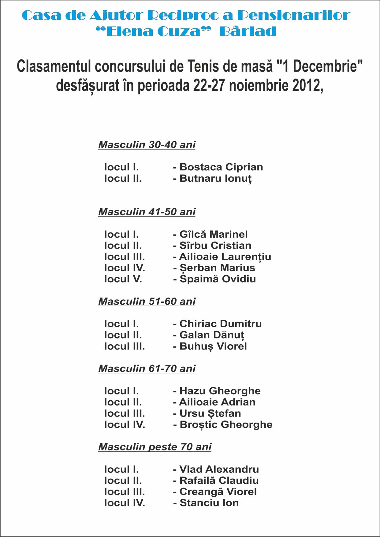 Castigatorii Concursului Cupa Toamnei la Tenis de Masa organizat cu ocazia Zilei Internationale a Persoanelor Varstnice, 1 Octombrie 2012 ...detalii