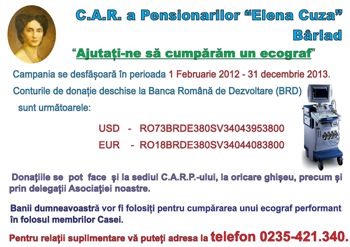 C.A.R. Pensionari "Elena Cuza" Barlad organizeaza pe 20 aprilie 2012,