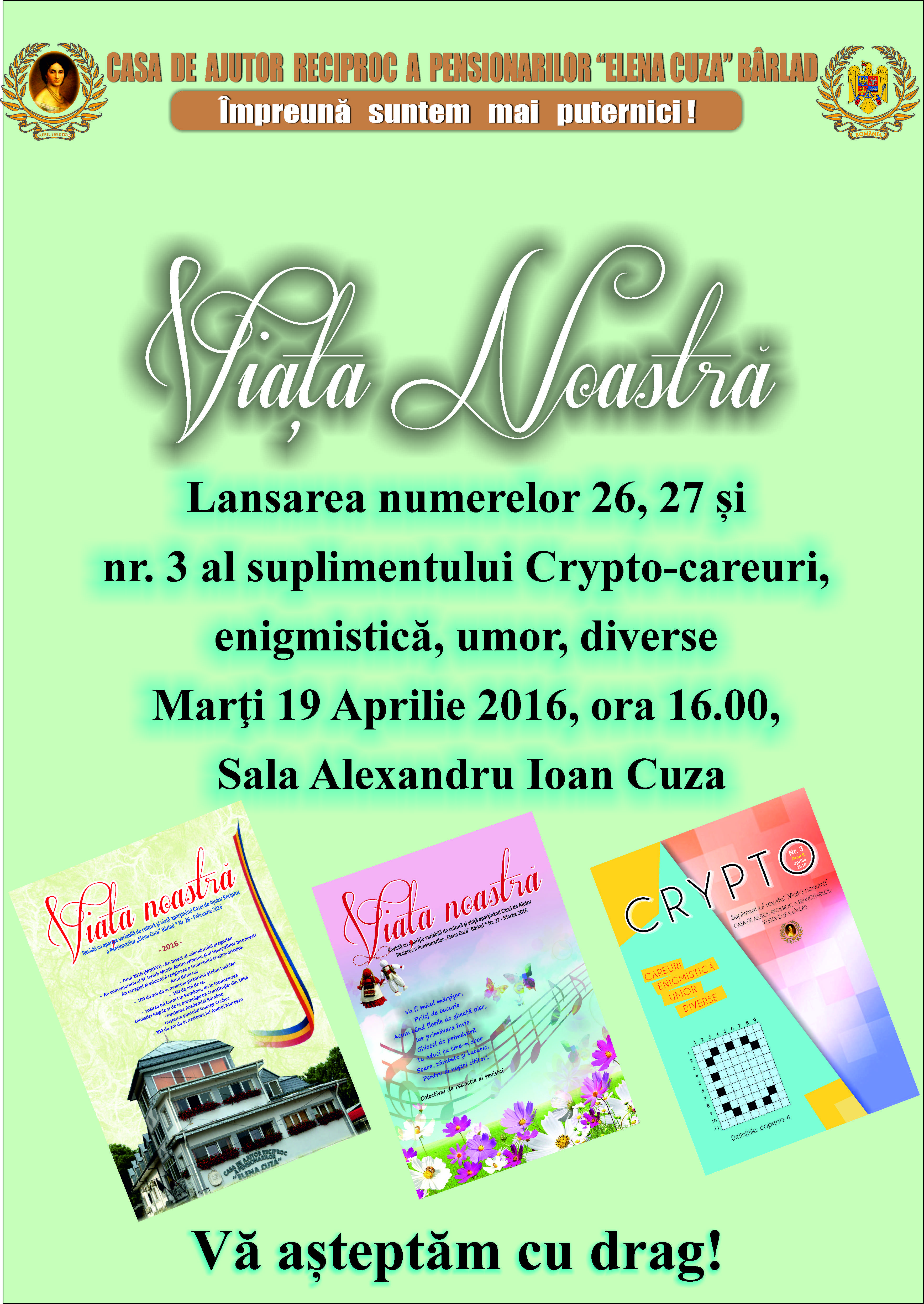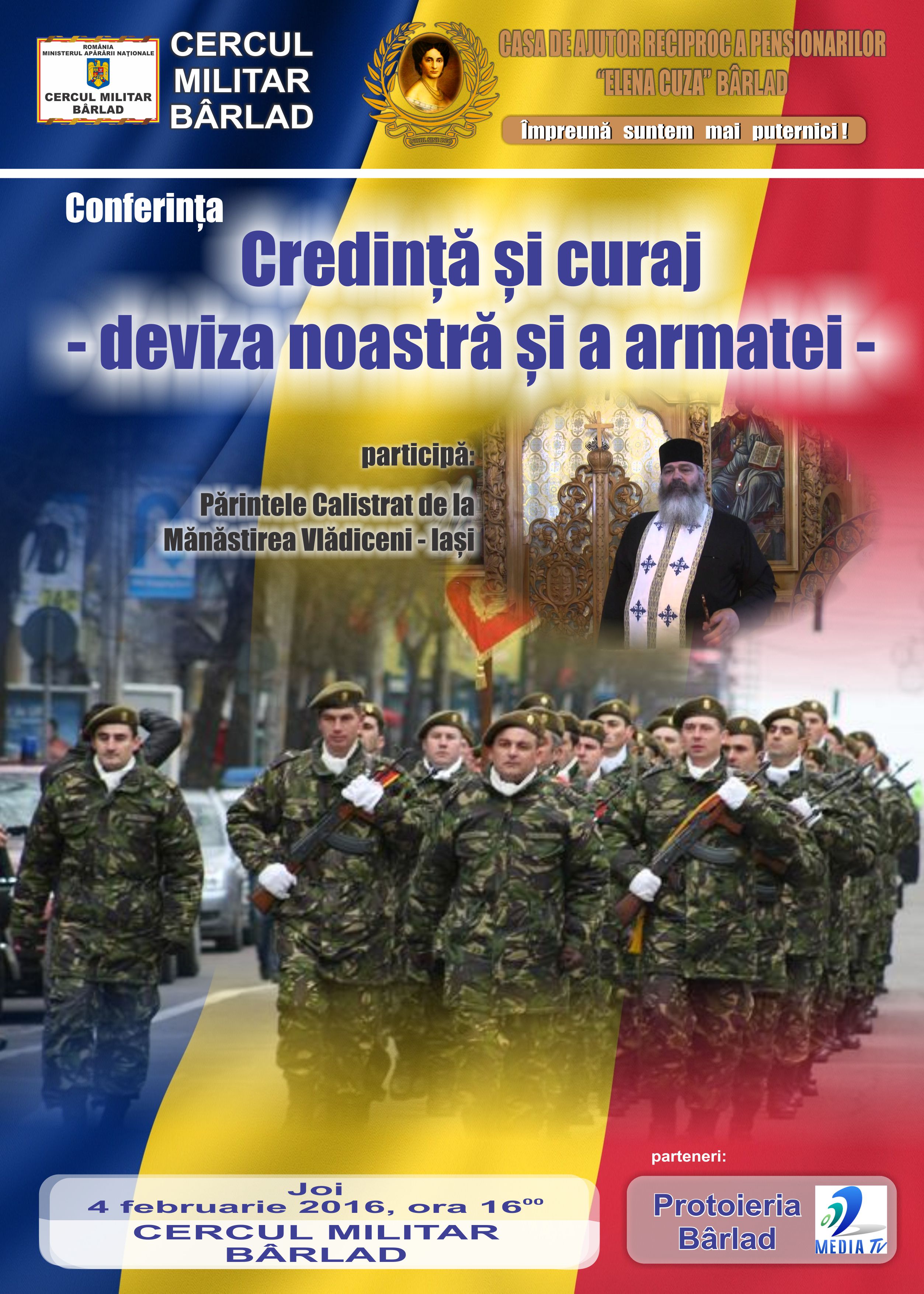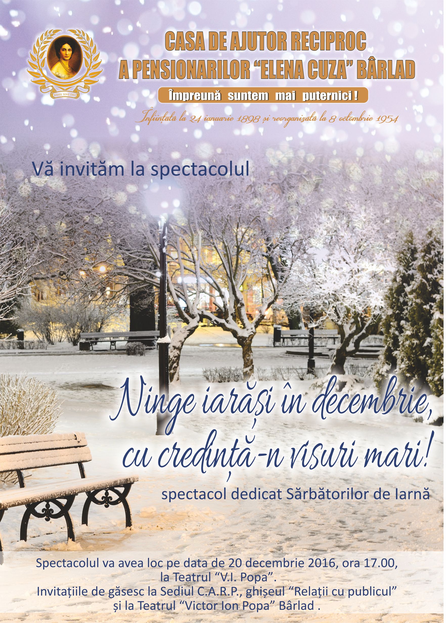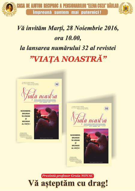 1 Decembrie 2016! Ziua Națională a României! Mărturisesc sincer că Speranța îmi dă curaj, iar Dumneavoastră, odată cu mine, știu că simțiți la fel. Multe conjuncturi ne-au ucis încrederea. Nădăjduiesc să nu se mai întâmple. Se vor aduna – sunt sigur – fiii acestui neam de prin străinătățurile unde slugăresc, vor redescoperi locul natal și Patria dintotdeauna, se vor ruga creștinește și vor pune umărul la propășirea României. Vor zidi case pentru ei și copiii lor, vor face șanțuri împotriva puhoaielor, vor reface codrii și vor umple dealurile cu vii, vor reface lanurile și vor crește stupinele, vor curăța imașurile pentru cirezi de vite și turme de oi, vor îmblânzi fiarele pădurii și vor redescoperi drumul spre școală și biserică, vor alerga la chemarea României pentru apărarea fruntariilor ei. Pentru că „tot ce-i românesc, nu piere!”