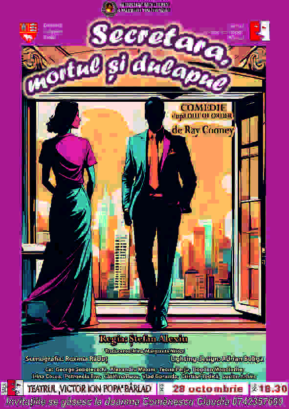 ”Propunerea noastră este o comedie. Într-o perioadă în care populația planetei este dominată de conflicte – religioase, interetnice, interumane – teatrul, ca-n totdeauna, rămâne soluția salvatoare, singura care ne poate atinge sufletul. Comedia Secretara, mortul și dulapul este un spectacol ce are toate datele necesare unor astfel de timpuri, dar umorul este cuvântul cheie! N-am dat textului profunzimi inutile, subînțelesuri sau introspecții fără sens; am vrut doar să cucerim spectatorul, să-l facem să se simtă prins în malaxorul încurcăturilor și să râdă cu poftă. Situațiile se schimbă din trei în trei minute, dacă nu și mai repede, iar personajele sunt puse în situații limită. De aici, rezultă acțiunea dinamică, vivacitatea, cheful de viață, într-un cuvânt, comedia. Ray Cooney, autorul textului, este, în primul rând, actor. El știe ce înseamn...