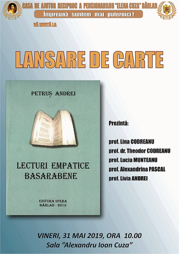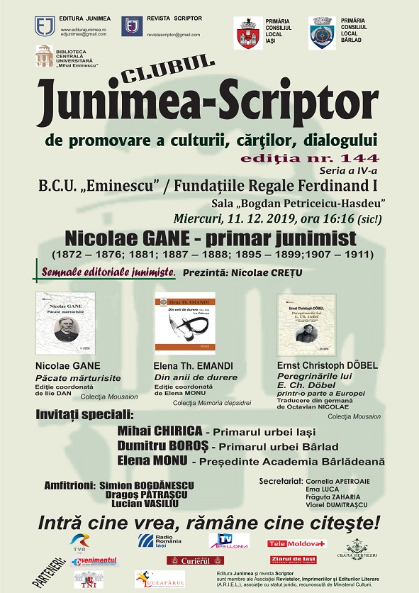 Organizat de Clubul Junimea-Scriptor, evenimentul a avut ca scop promovarea culturii și dialogul între oamenii cărților din orașele Iași și Bârlad. Invitații speciali ai activității au fost primarul Bârladului, avocat Dumitru Boroș și doamna profesor Elena Monu, Președinta Academiei Bârlădene. Au luat cuvântul Ioan Buftea, Nicolae Crețu, Vlad Nicolaie Nedelcu, Simion Bogdănescu, Dragoș Pătrașcu, Lucian Vasiliu și membrul de onoare al Casei de Ajutor Reciproc a Pensionarilor ,,Elena Cuza’’ din Bârlad- profesorul Gruia Novac. Mai amintim că au participat și viceprimarul municipiului Bârlad- profesor Roxana Miron Feraru, doamna doctor Tiron Cristina și președintele Casei de Ajutor Reciproc a Pensionarilor ,,Elena Cuza’’ din Bârlad- magistrat pensionar Nicolaie Mihai, personalități bine cunoscute pentru iubirea și aprecierea ce le poartă literaturii, culturii și valorilor tradiționale. În acest context s-au lan...