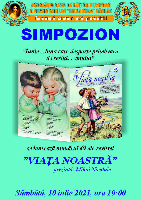 Joi , 23 decembrie 2021, ora 10.00, se va lansa on-line numărul 53 al revistei VIAȚA NOASTRĂ‚ Revista va fi tipărită până la data de 30 decembrie 2021 și se va putea procura de la sediul Asociației.